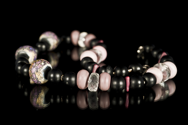 Künstlerglasperlen in modischen Lilatönen abgerundet mit 925/00