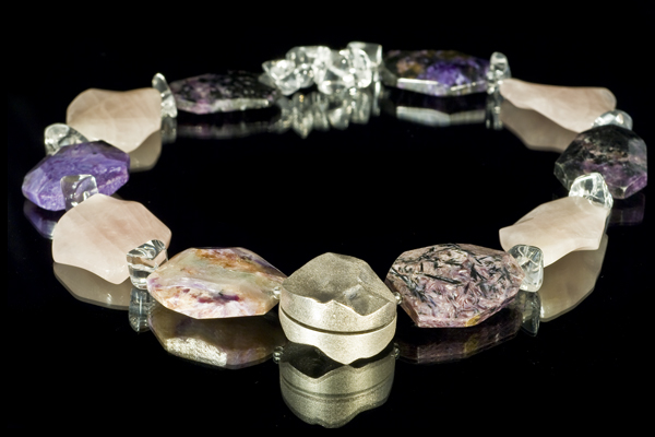 geschliffenen Charoitelementen. Eine Designermagnetschließe
